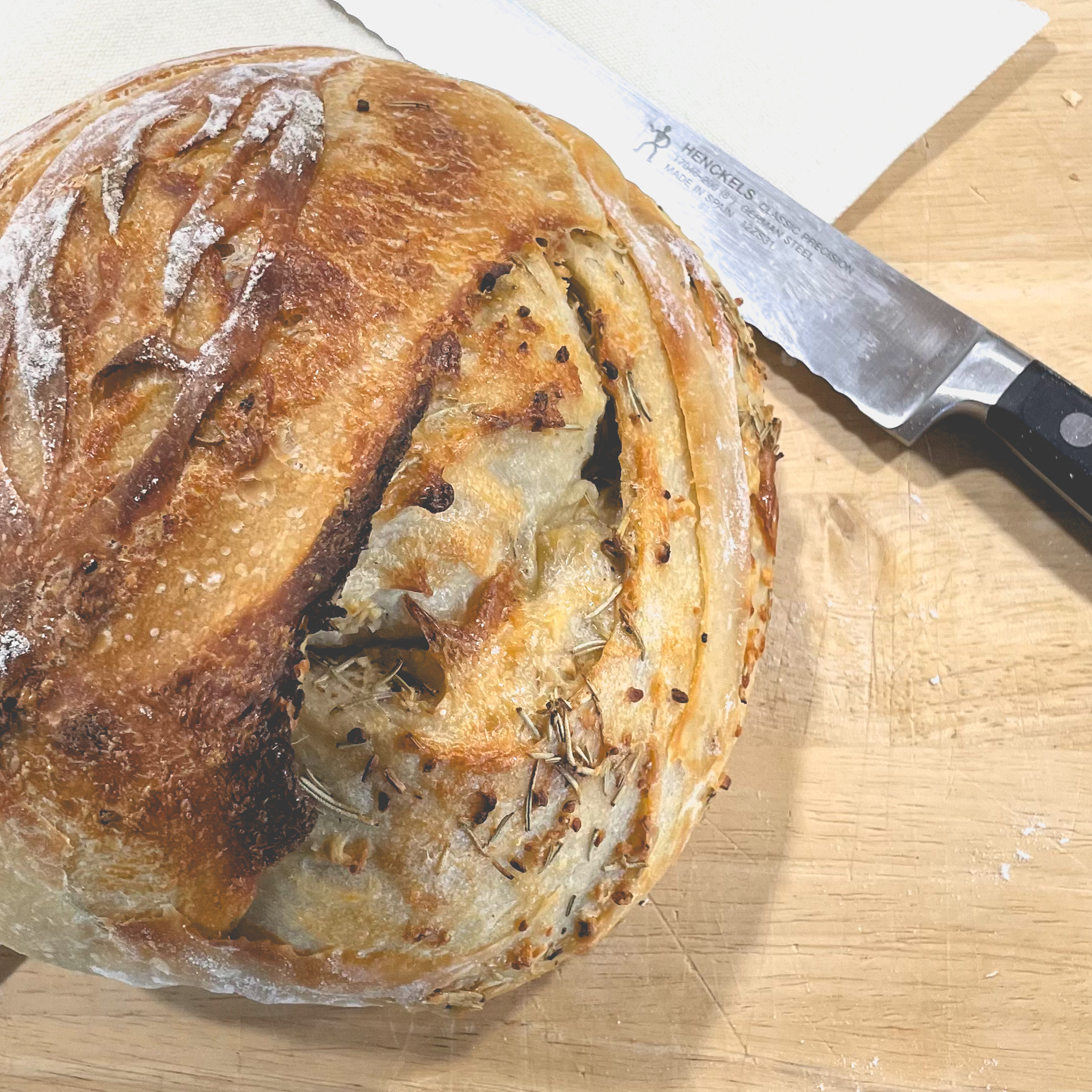 Artisan sourdough infused with basil and sweet sundried tomatoes. The perfect savory accompaniment to your Thanksgiving meal with bold Mediterranean flavors.
